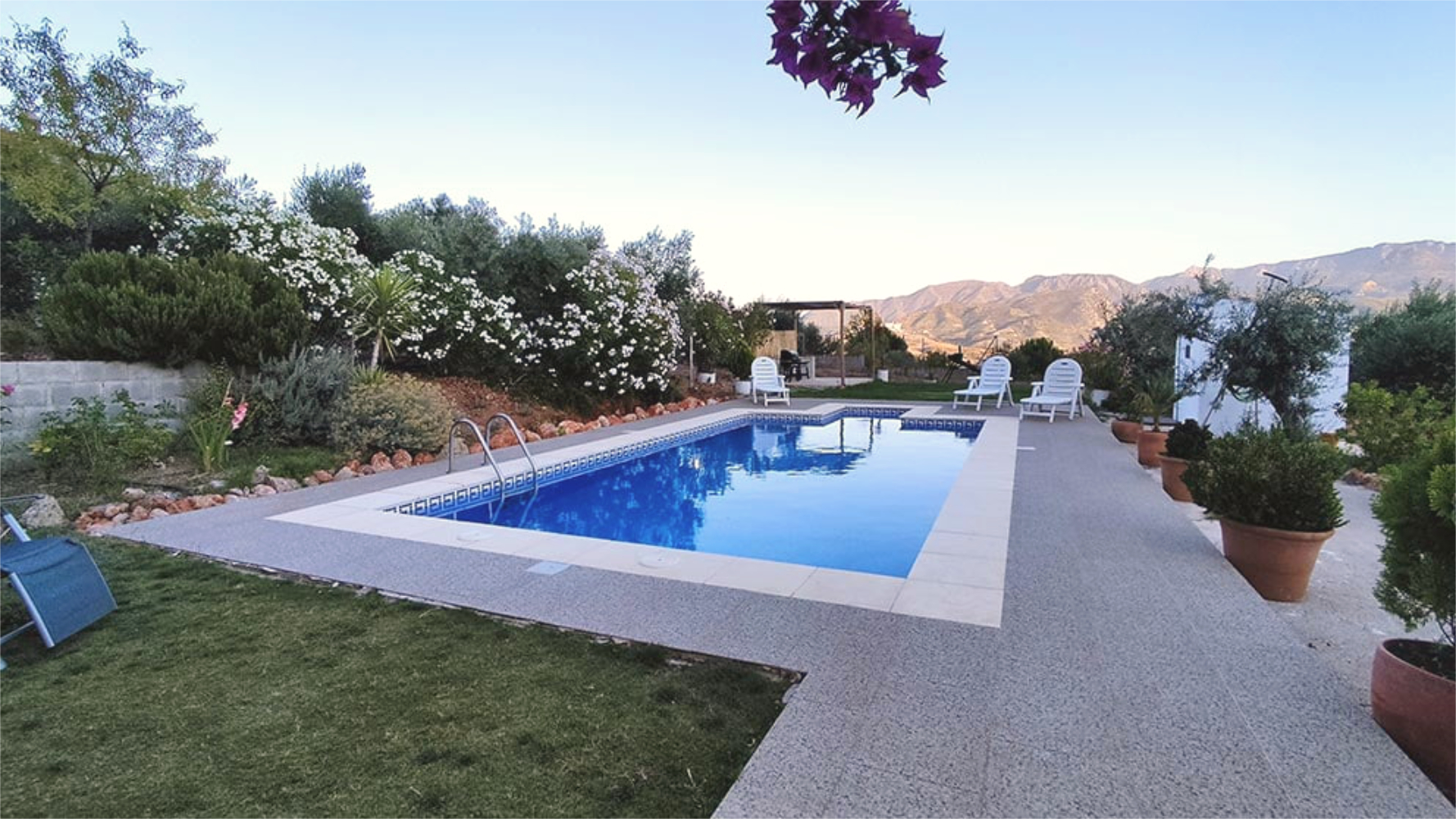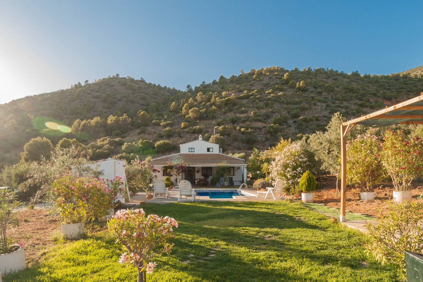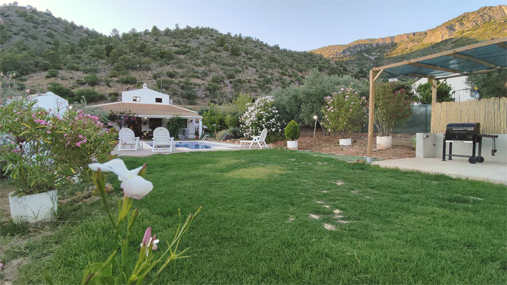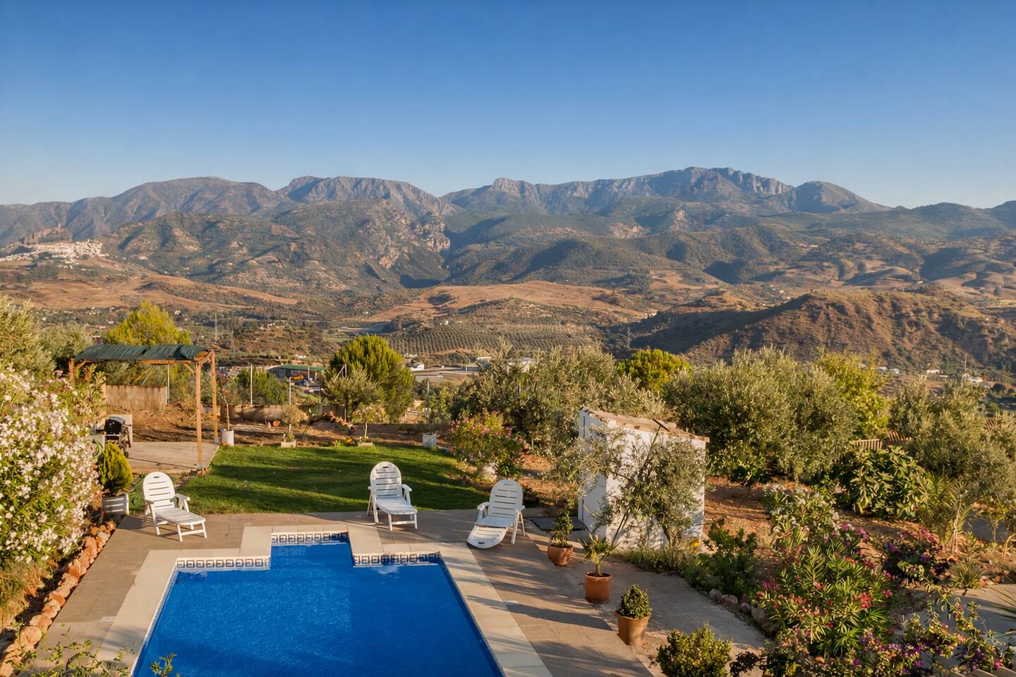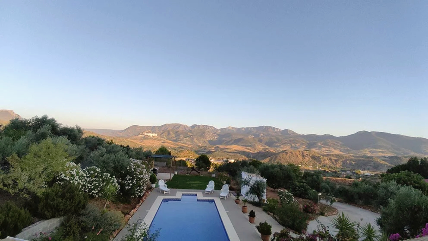 La casa tiene capacidad para 6 personas y cuenta con 3 habitaciones cómodas y bien equipadas, 1 baño completo con ducha y 1 aseo, ofreciendo un ambiente acogedor y funcional. En el interior, el salón dispone de chimenea abierta, un gran ventanal, TV de pantalla plana, DVD y equipo de música, además de juegos de mesa y libros para su entretenimiento. La cocina está equipada con electrodomésticos y utensilios básicos para cocinar con comodidad. En el exterior, destaca un porche amplio frente a la piscina privada, donde podrá disfrutar de vistas privilegiadas de la Sierra de Grazalema.